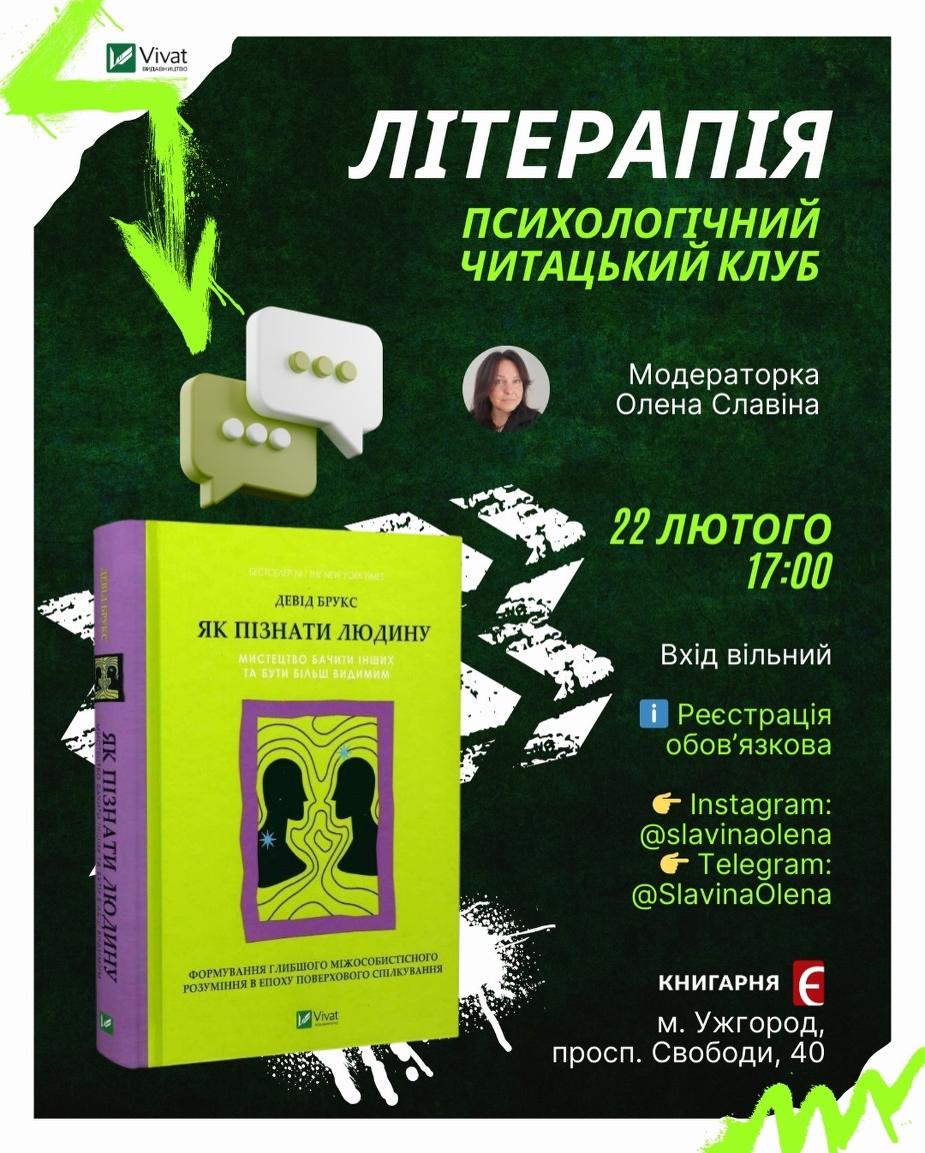 Психологічний читацький клуб "ЛІТерапія". Дослідження книги Девіда Брукса "Як пізнати людину" у місті Ужгород