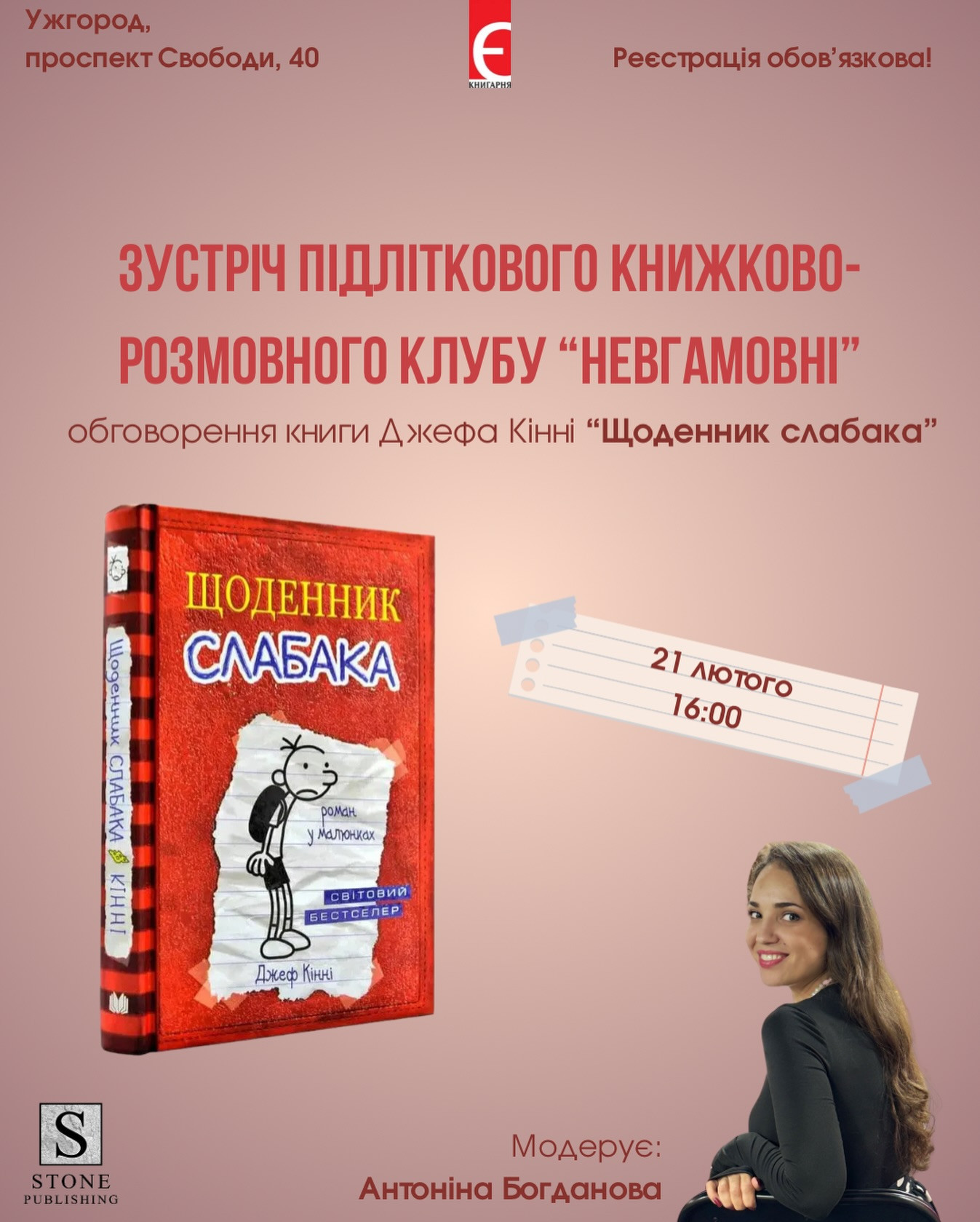 Запрошуємо вас на зустріч-обговорення культової книги "Щоденник слабака" Джефа Кінні (видавництво Stone Publishing, раніше КМ-Букс).