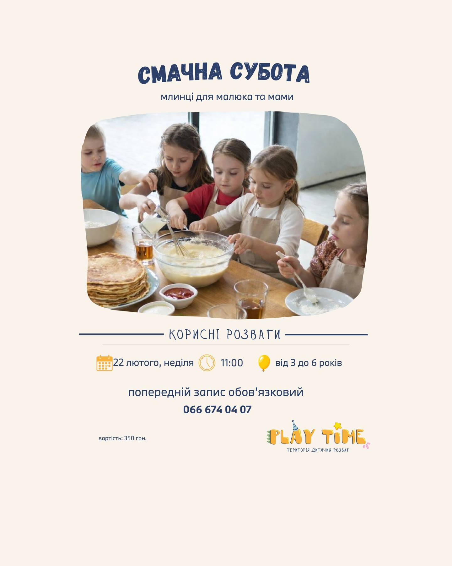Запрошуємо на кулінарний майстер-клас "Млинці" для малюка та мами — теплу й смачну подію для спільного часу разом.