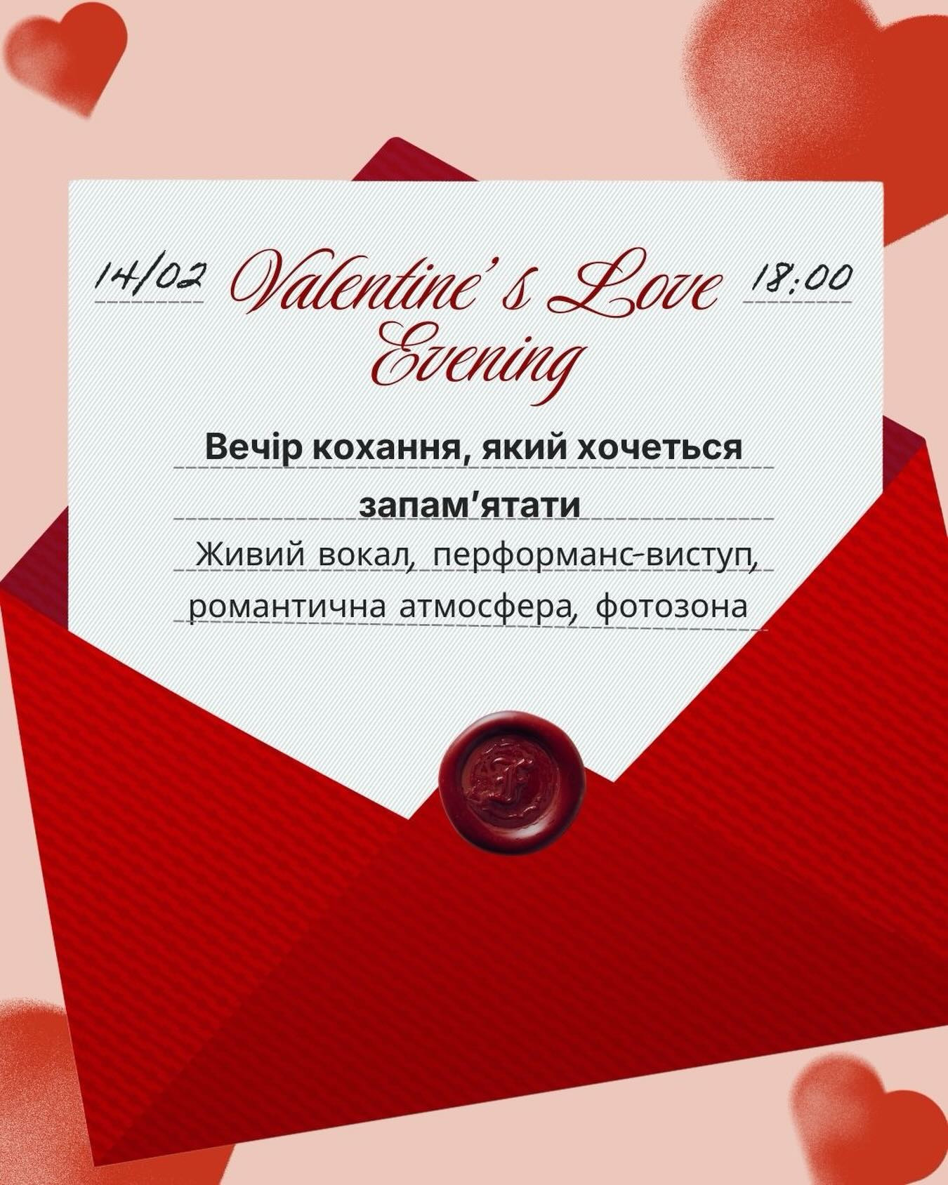 Живий вокал, захопливий перформанс, фотозона та смачні страви від нашого шефа — усе для того, аби створити ідеальну атмосферу для закоханих пар.