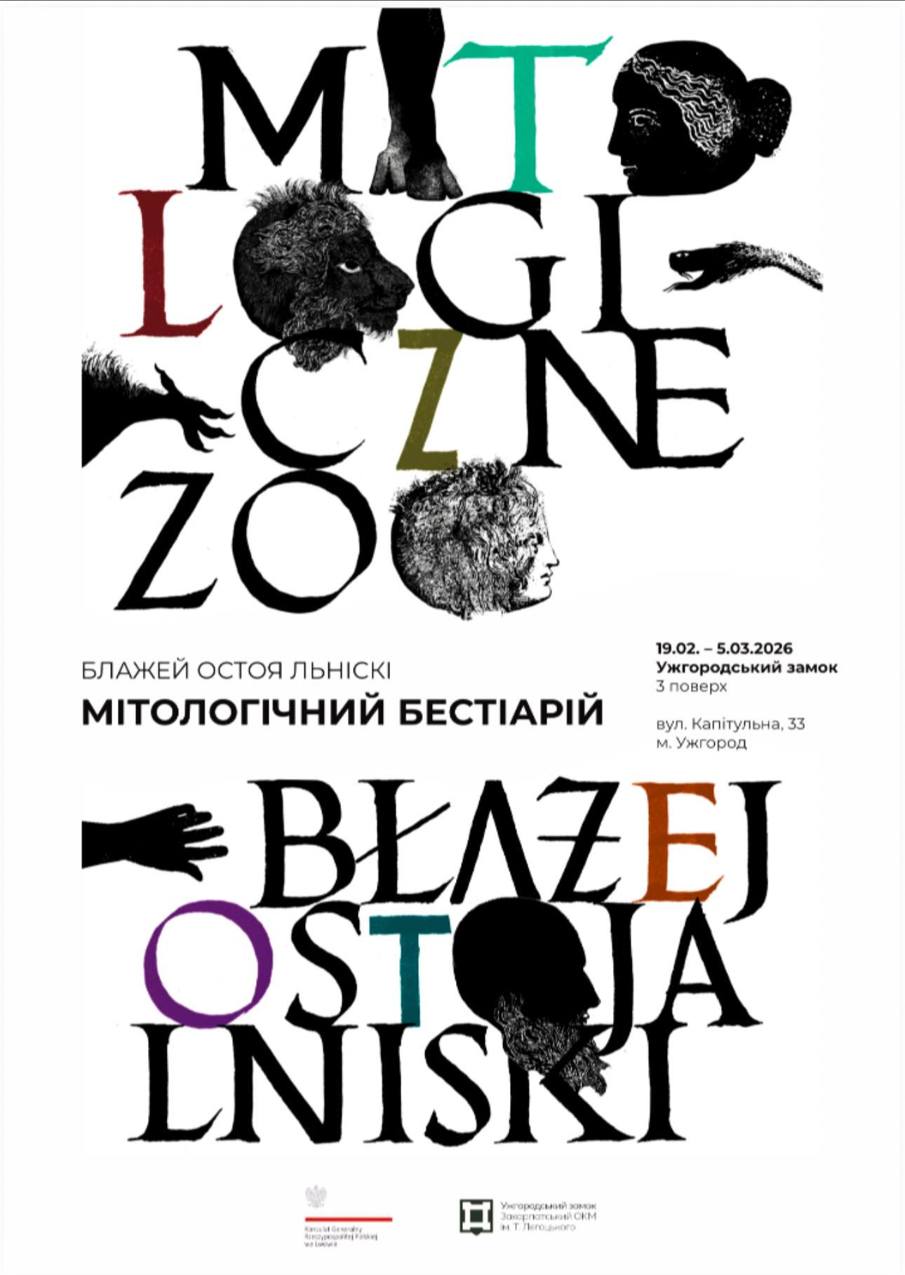 Виставка "Мітологічний бестіарій" – це сучасне художнє переосмислення античної мітології у графічних роботах проф., д-р габ. Блажея Остоя Льніского. Твори поєднують відсилання до традиції чорнофігурного малярства з сучасною візуальною мовою.