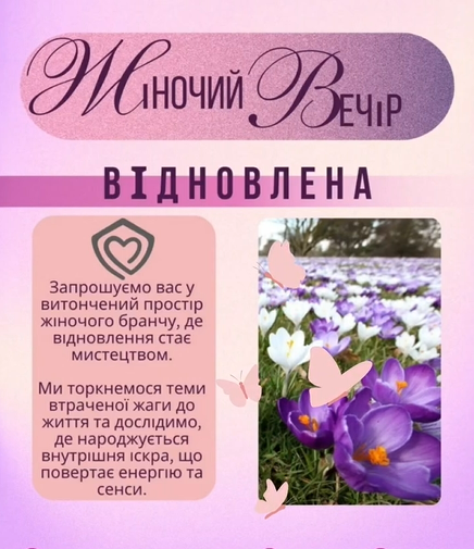 Запрошуємо вас у витончений простір жіночого бранчу, де відновлення стає мистецтвом. Ми торкнемося теми втраченої жаги до життя та дослідимо, де народжується внутрішня іскра, що повертає енергію та сенси.