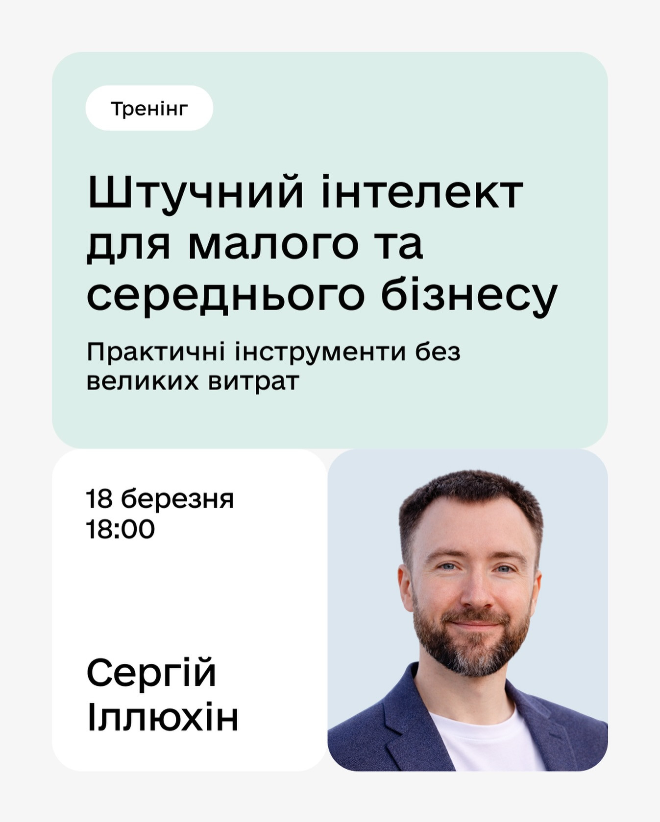 Спікер: Сергій Іллюхін — AI Engineering Manager в eToro, засновник AI-агенції Mission101 з понад 20-річним досвідом у розробці цифрових рішень.