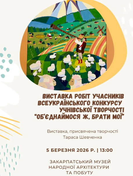 Радо запрошуємо на виставку робіт учасників ІІІ (обласного) етапу Всеукраїнського конкурсу учнівської творчості "Об'єднаймося ж, брати мої", присвяченого Шевченківським дням.