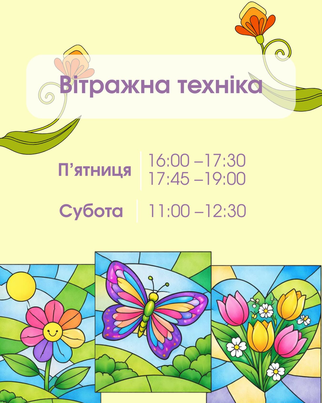 Цього разу ми познайомимось із цікавою технікою вітражу! Діти створять власну весняну роботу у стилі кольорового скла — з пташками, квітами та сонечком.