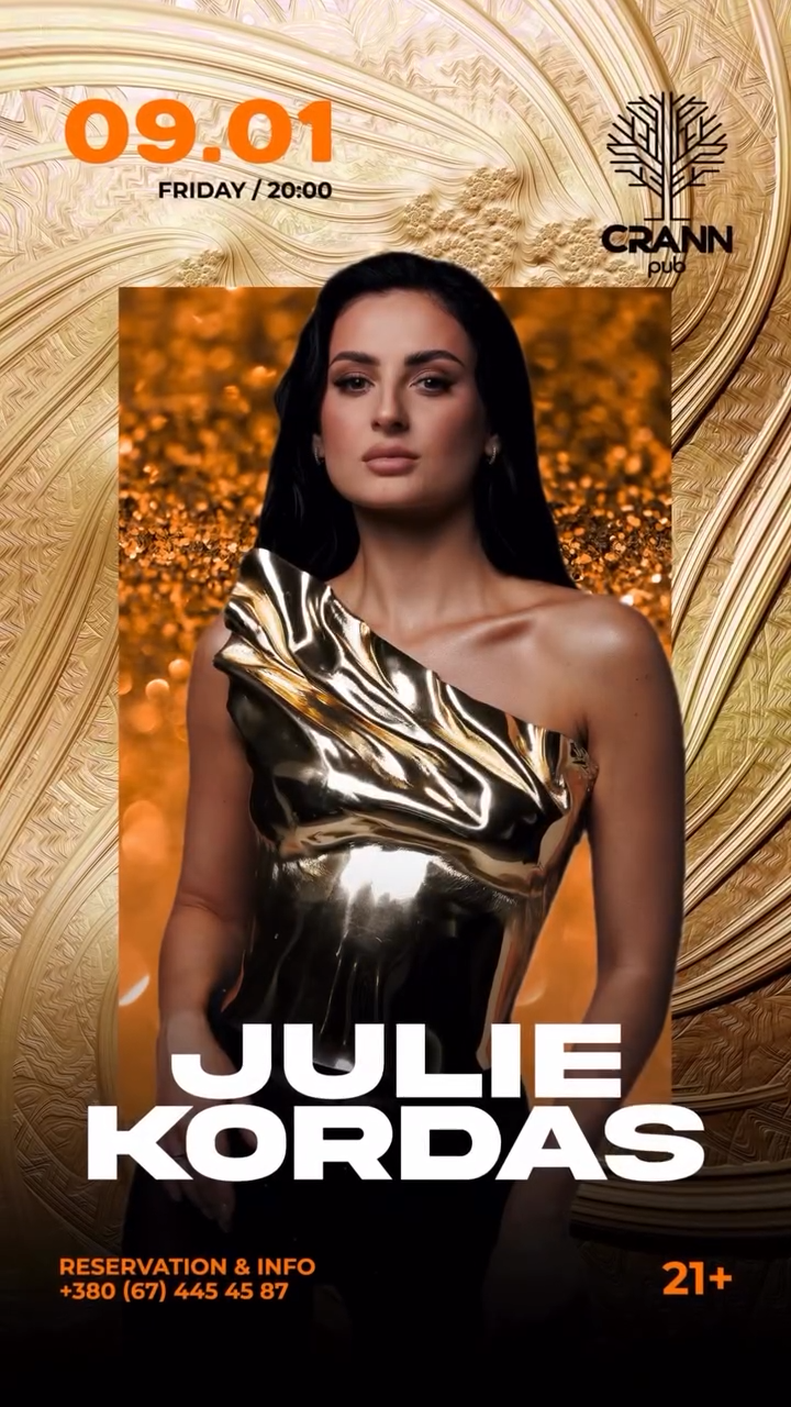 Запрошуємо на вечір із DJ Julie Kordas — атмосферну подію, сповнену ритму, стилю та гарного настрою.