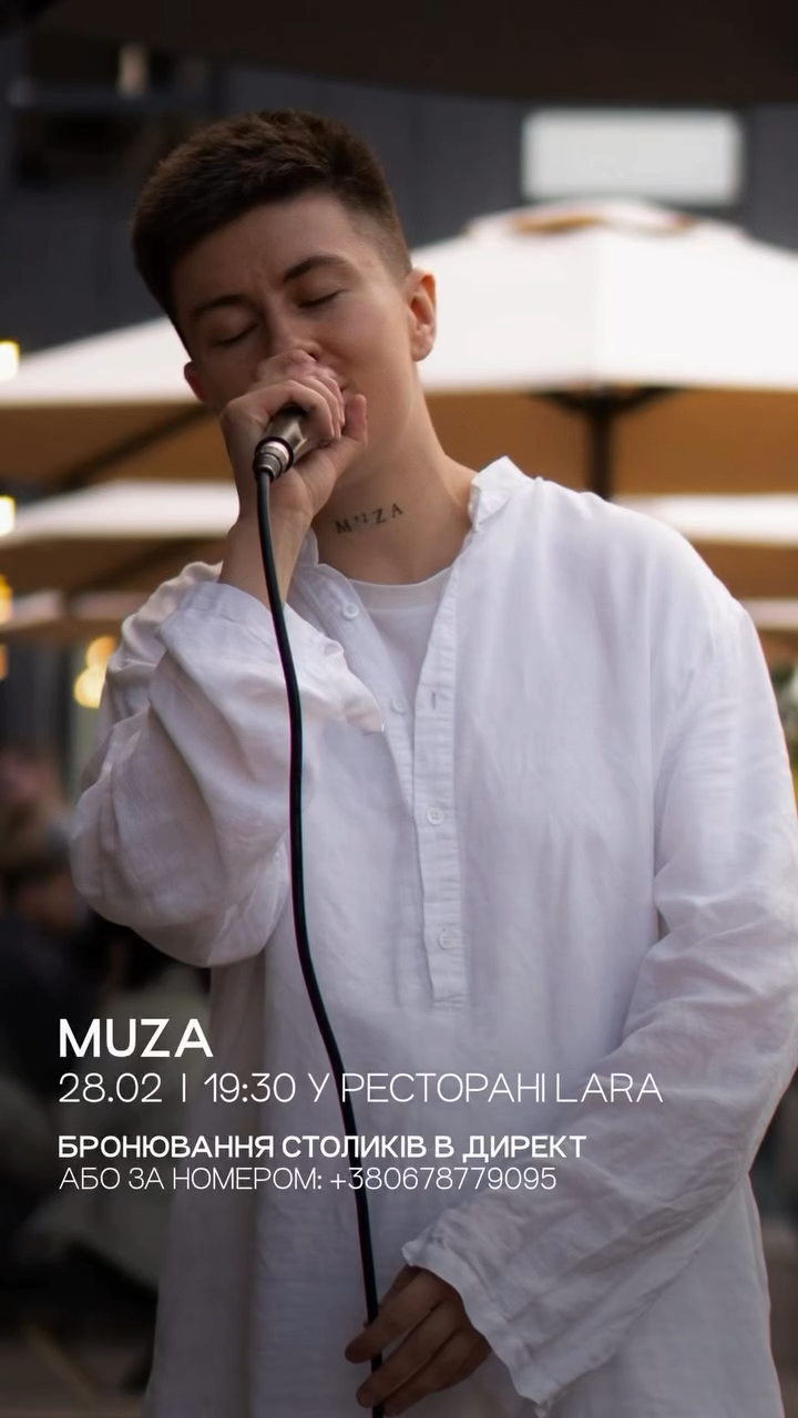 На вас чекає ніжний, мелодійний вечір, що огорне атмосферою та теплом, адже в LaRA співатиме MUZA.