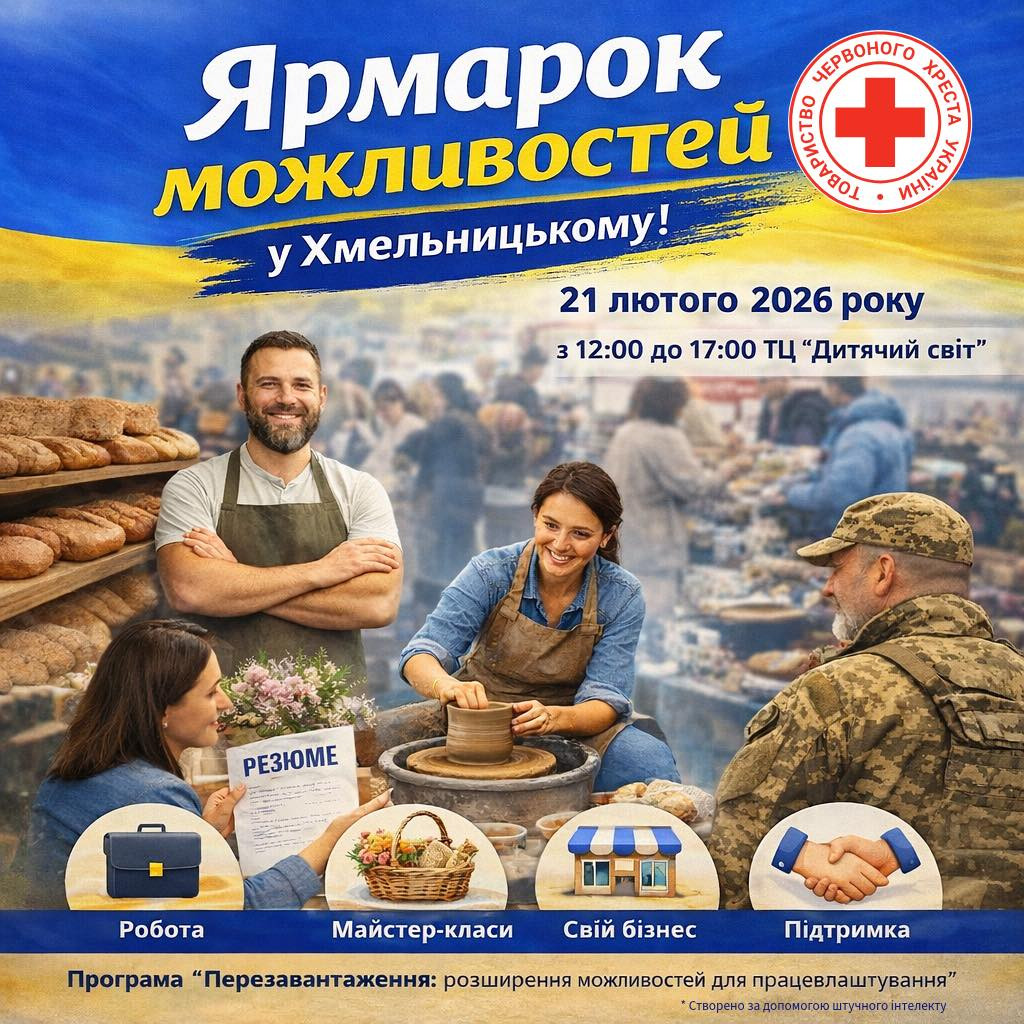Запрошуємо маріупольців відвідати "Ярмарок можливостей" від Хмельницької обласної організації Українського Червоного Хреста — подія для тих, хто хоче розвиватися, знаходити нові можливості та будувати впевнене майбутнє.