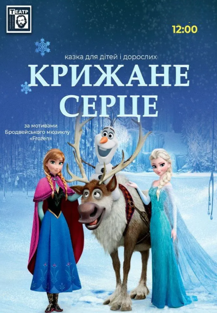 На сцені оживе історія двох сестер — Анни та Ельзи, які відкривають силу любові, дружби та сміливості. На вас чекають: чарівні костюми та світлові ефекти, які перетворять залу на зимове королівство, добрі й кумедні герої — Олаф, Крістоф та інші, що подарують дітям сміх і тепло.