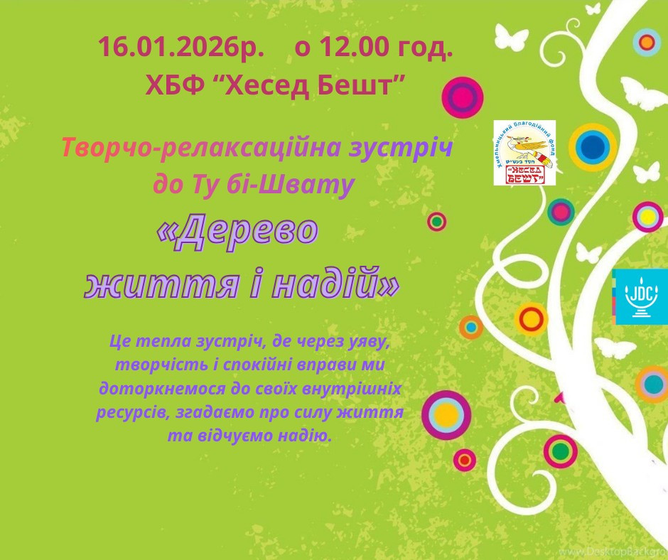 Запрошуємо всіх охочих на особливу зустріч до Ту бі-Швату! Це буде творчо-релаксаційна зустріч "Дерево життя і надій".