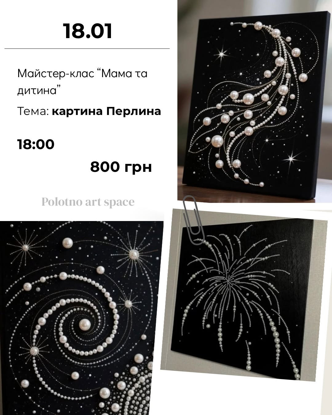 Запрошуємо на майстер-клас у форматі "Мама та дитина" — картина "Перлина". Це теплий формат для спільного часу: мама й дитина створюють одну картину разом — спокійно, красиво і без "треба вміти".