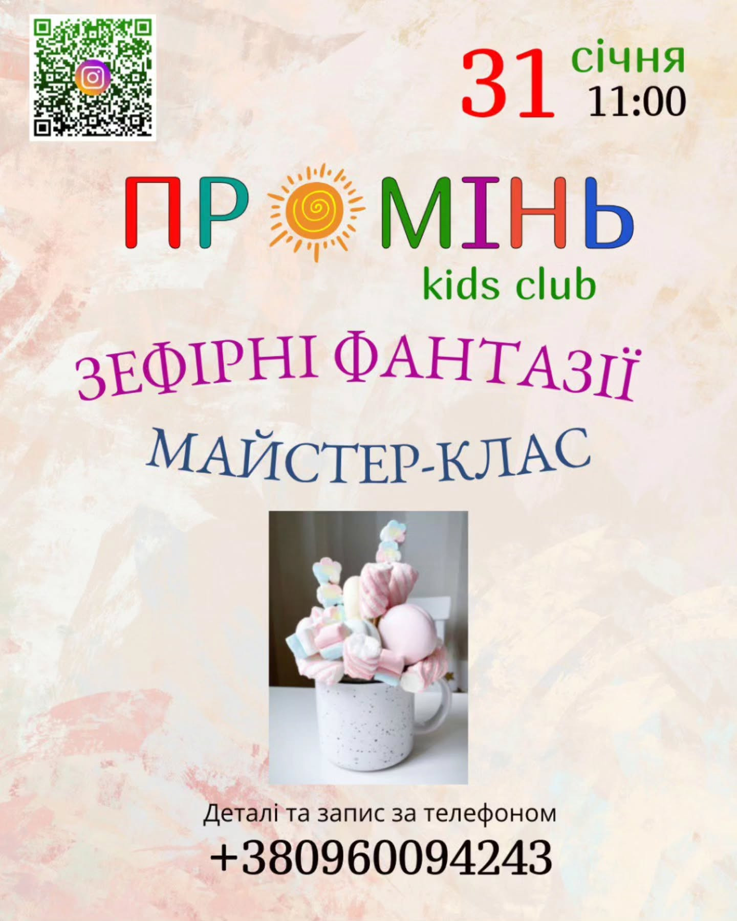 На майстер-класі діти створять власні зефірні композиції в чашці, які зможуть забрати додому та отримають багато радості, тепла й щирих усмішок. Бо навчання може бути легким, затишним і дуже смачним.