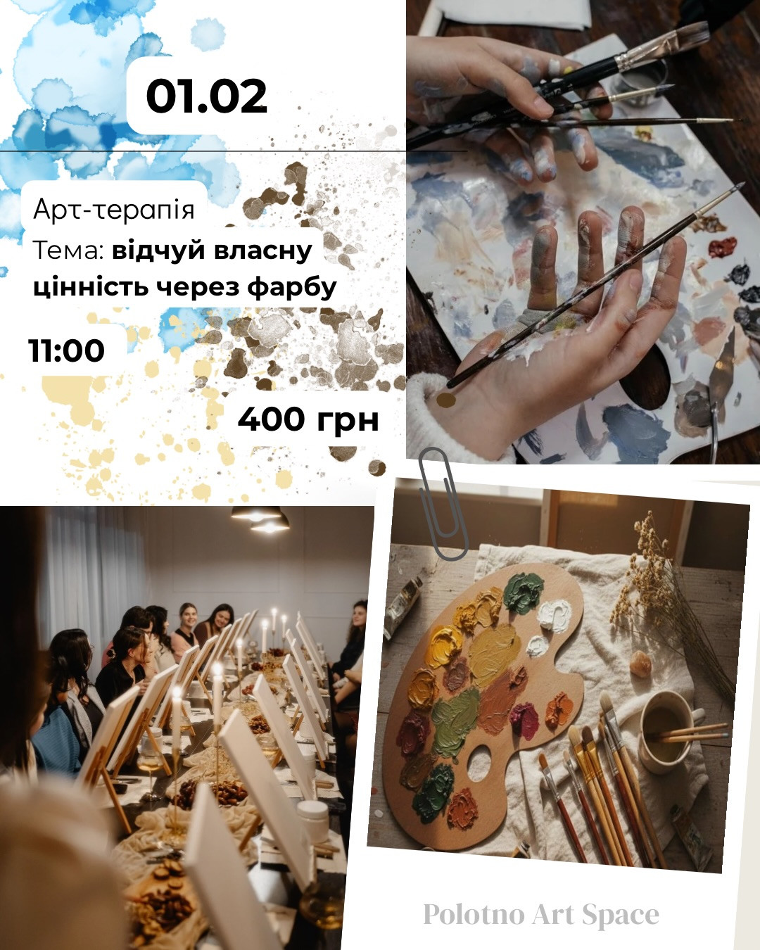 Запрошуємо на арт-терапевтичну зустріч "Відчуй власну цінність через фарбу" — м'який творчий простір для знайомства з собою через колір і відчуття.