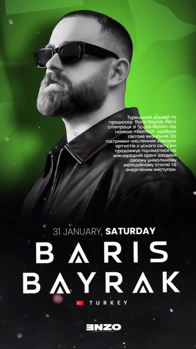 Baris Bayrak працює з динамікою танцполу: поступово занурює, тримає ритм і виводить у пікові моменти без зайвого шуму.