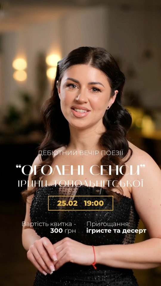 ОГОЛЕНІ СЕНСИ — дебютний вечір поезії ІРИНИ ТОПОЛЬНІЦЬКОЇ.