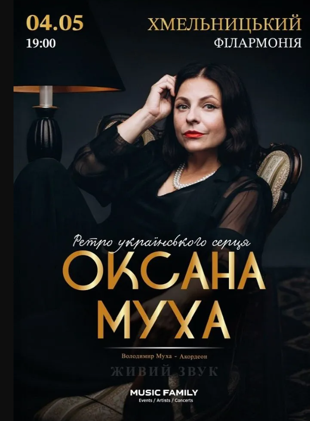Заслужена артистка України, переможниця телепроєкту "Голос країни" та володарка Гран-прі Першого Міжнародного конкурсу українського романсу імені Квітки Цісик – Оксана Муха з великим концертом!