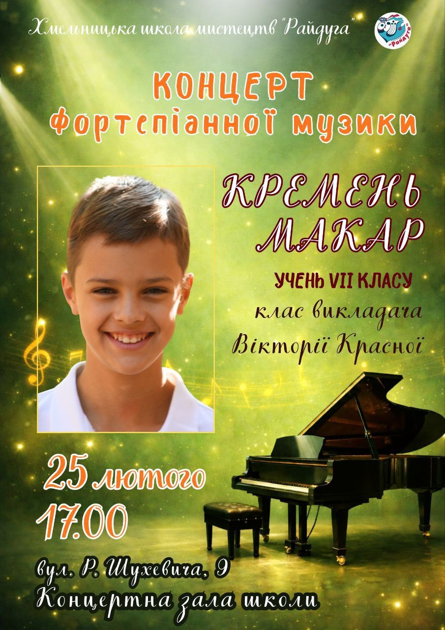 Концерт фортепіанної музики від Кремень Макара, учня 7-го класу у місті Хмельницький