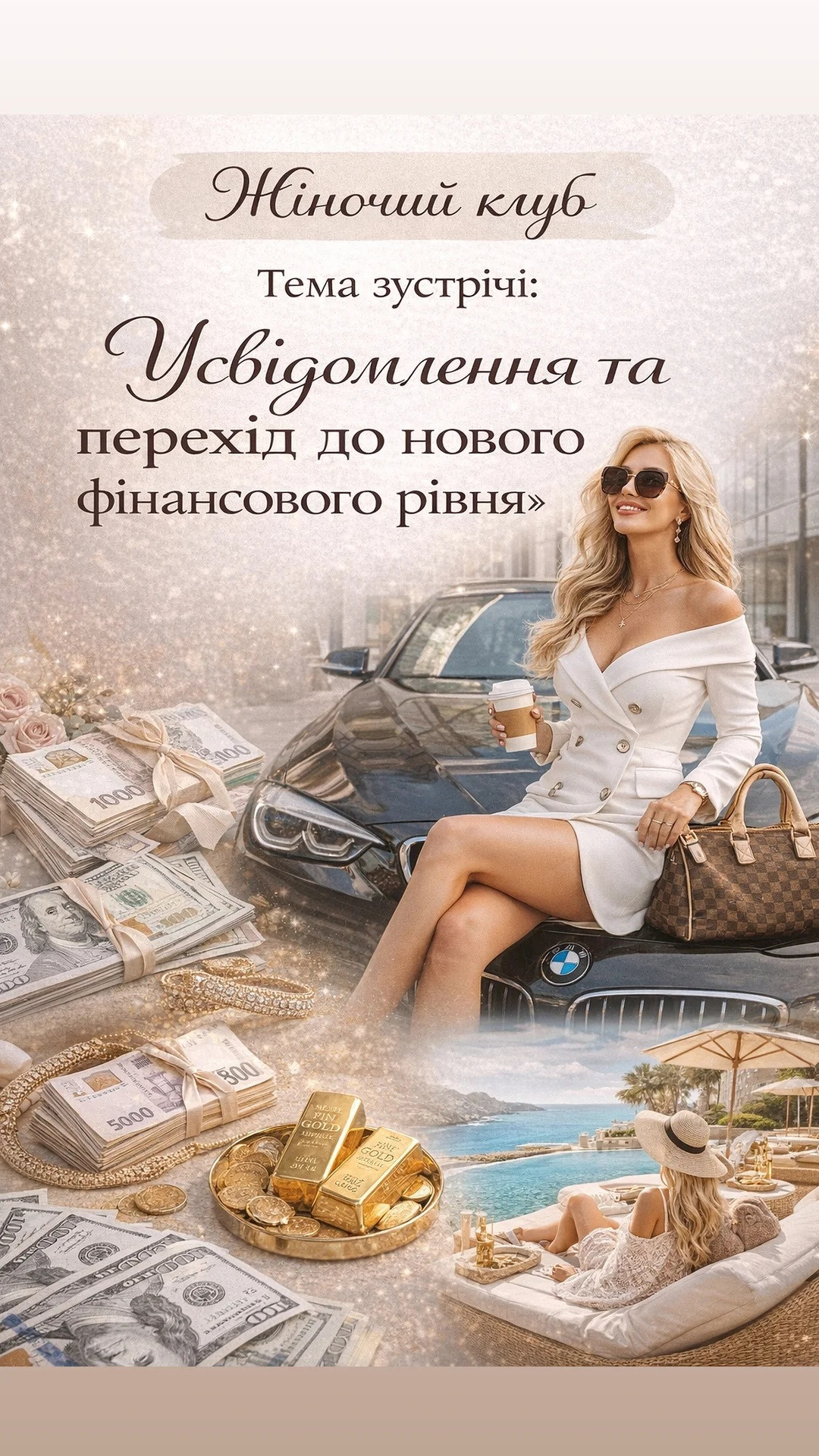 Запрошуємо жінок на зустріч, присвячену фінансовій самореалізації та розвитку внутрішньої опори для успіху.