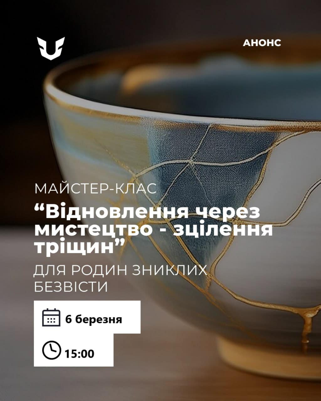 Запрошуємо вас на майстер-клас на основі японського мистецтва кінцуґі "Відновлення через мистецтво: зцілення тріщин".
