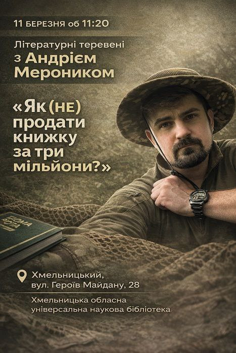 Літературні теревені з Андрієм Мероником "Як (не) продати книжку за три мільйони?" у місті Хмельницький