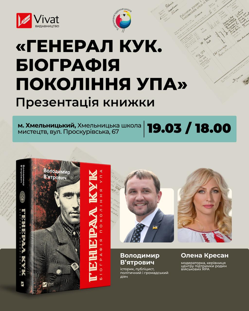 Історик і публіцист Володимир В'ятрович представить книгу про Василя Кука — останнього головнокомандувача УПА. Це розповідь про життя людини, яка пройшла крізь боротьбу, підпілля й десятиліття після війни, залишившись символом незламності.