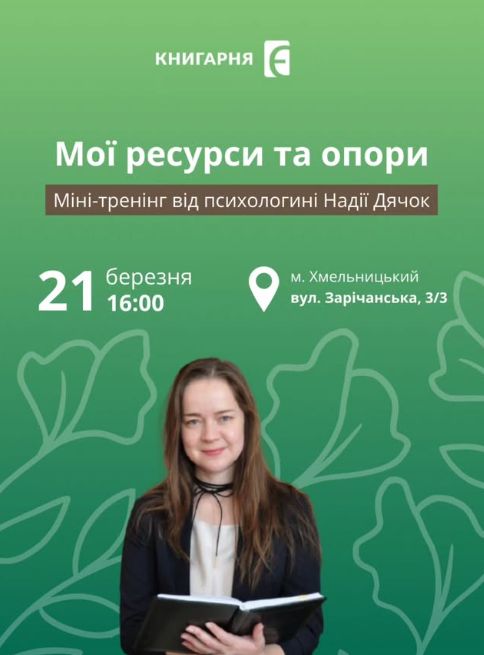 Запрошуємо на міні-тренінг психологині Надії Дячок "Мої ресурси та опори" — зустріч про те, де шукати внутрішню стабільність, коли світ навколо нестабільний.