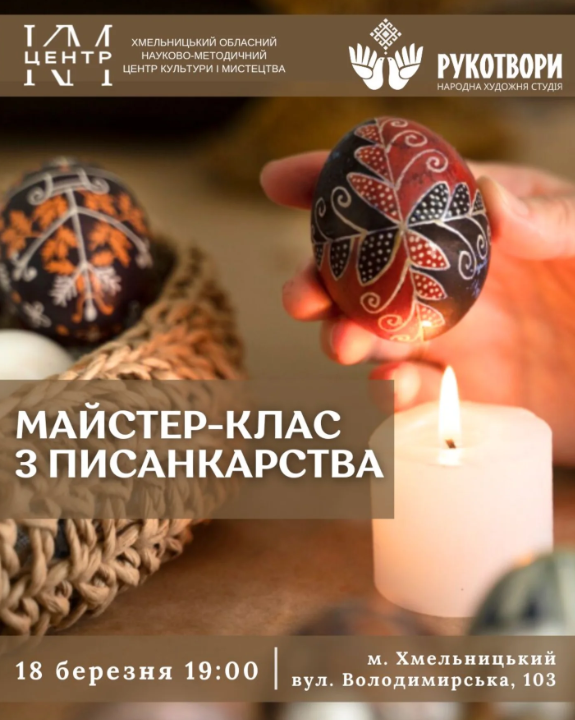 Під час майстер-класу учасники познайомляться з основами традиційного розпису писанок, дізнаються про символіку орнаментів і кольорів, а також спробують себе у давньому мистецтві писанкарства. Захід підійде як для тих, хто вперше бере до рук писачок, так і для тих, хто хоче вдосконалити свої навички.