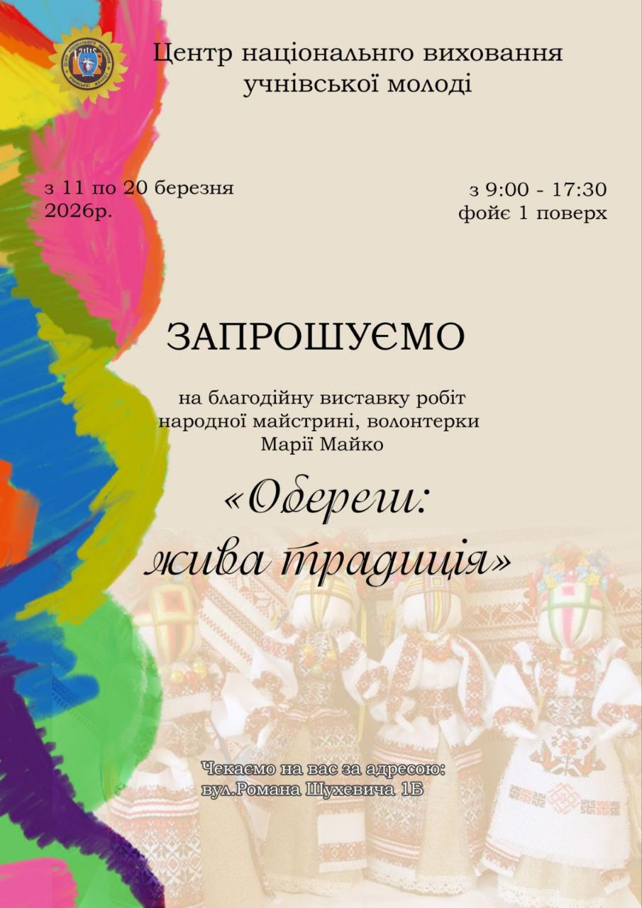 Запрошуємо на благодійну виставку "Обереги: жива традиція" народної майстрині та волонтерки Марія Майко.