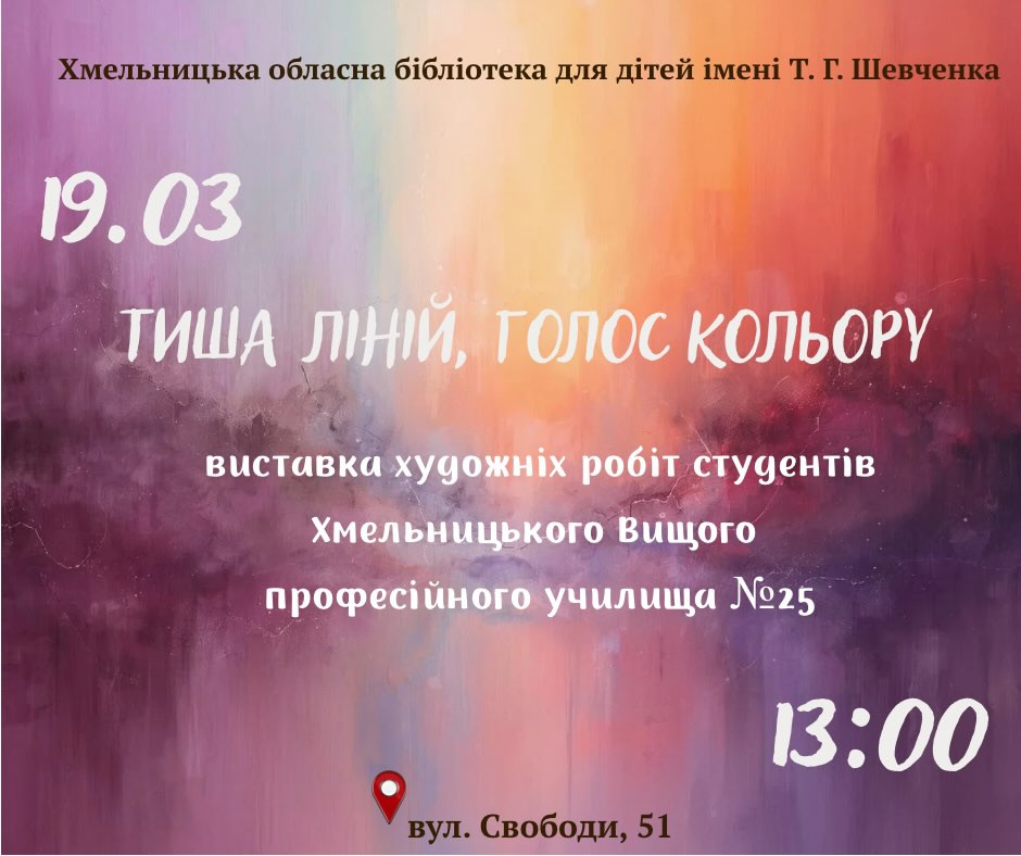 Запрошуємо на виставку художніх робіт студентів Хмельницького Вищого професійного училища №25 "Тиша ліній, голос кольору".