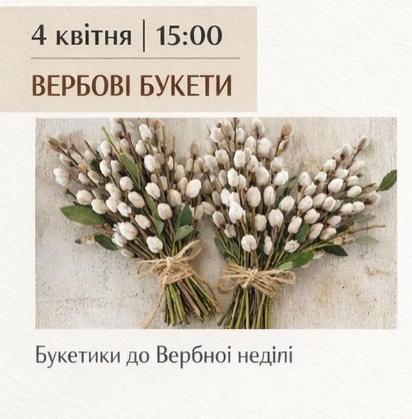Запрошуємо на майстер-клас "Вербові букети" — ніжну весняну зустріч, наповнену світлом, теплом і натхненням. Разом ми створимо красиві святкові композиції з верби, що стануть символом оновлення та затишку у вашому домі.