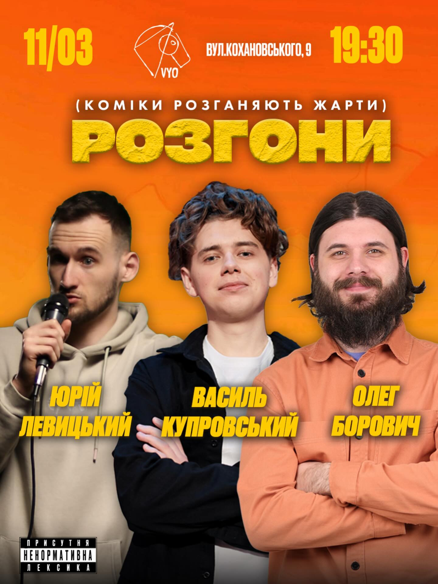 Цієї середи на вас очікує комедійно-імпровізаційне шоу РОЗГОНИ, де глядачі безпосередньо можуть впливати на теми, які звучатимуть зі сцени.