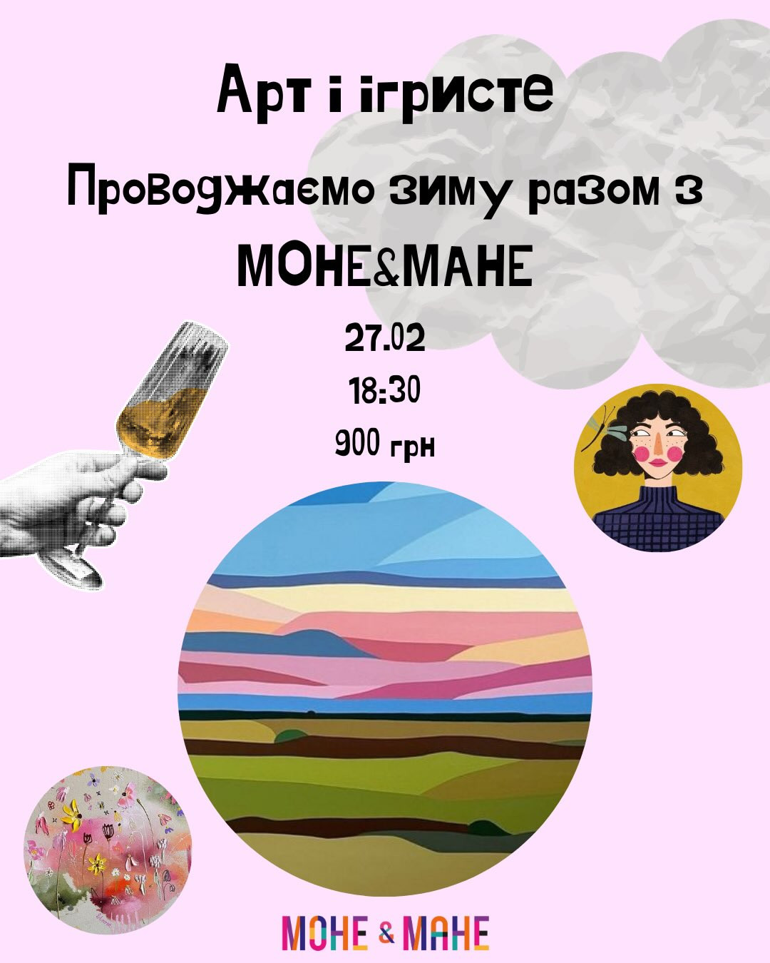 Давайте проводжати зиму разом з МОНЕ&МАНЕ. За келихом ігристого будемо малювати те чого бажає душа, тема- вільна!