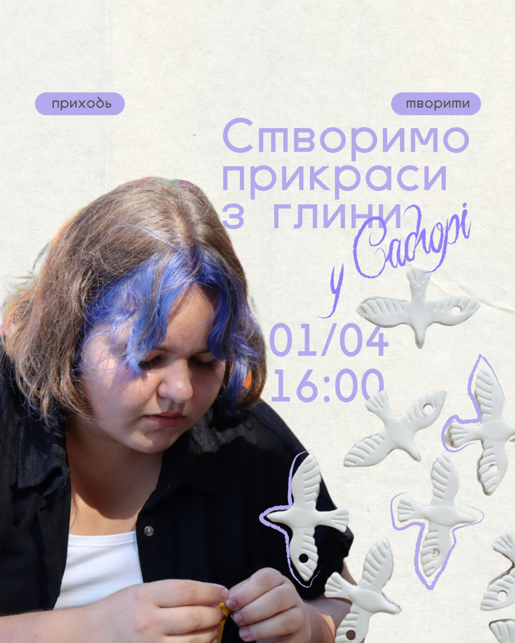 Гарна нагода зустрітися і творити разом у Садгорі. Приходь на майстерку створювати глиняні прикраси, які можна повісити на шию, сумку чи зробити брелоком.