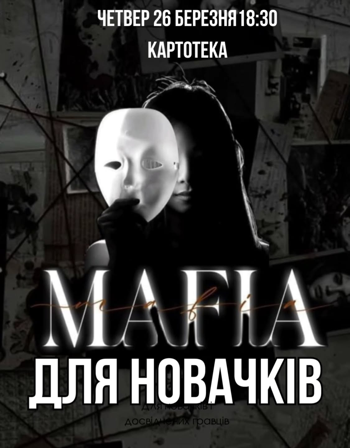 МАФІЯ ДЛЯ НОВАЧКІВ. Ця гра створена спеціально для тих, хто тільки знайомиться зі світом Мафії — без стресу, у легкій та дружній атмосфері.