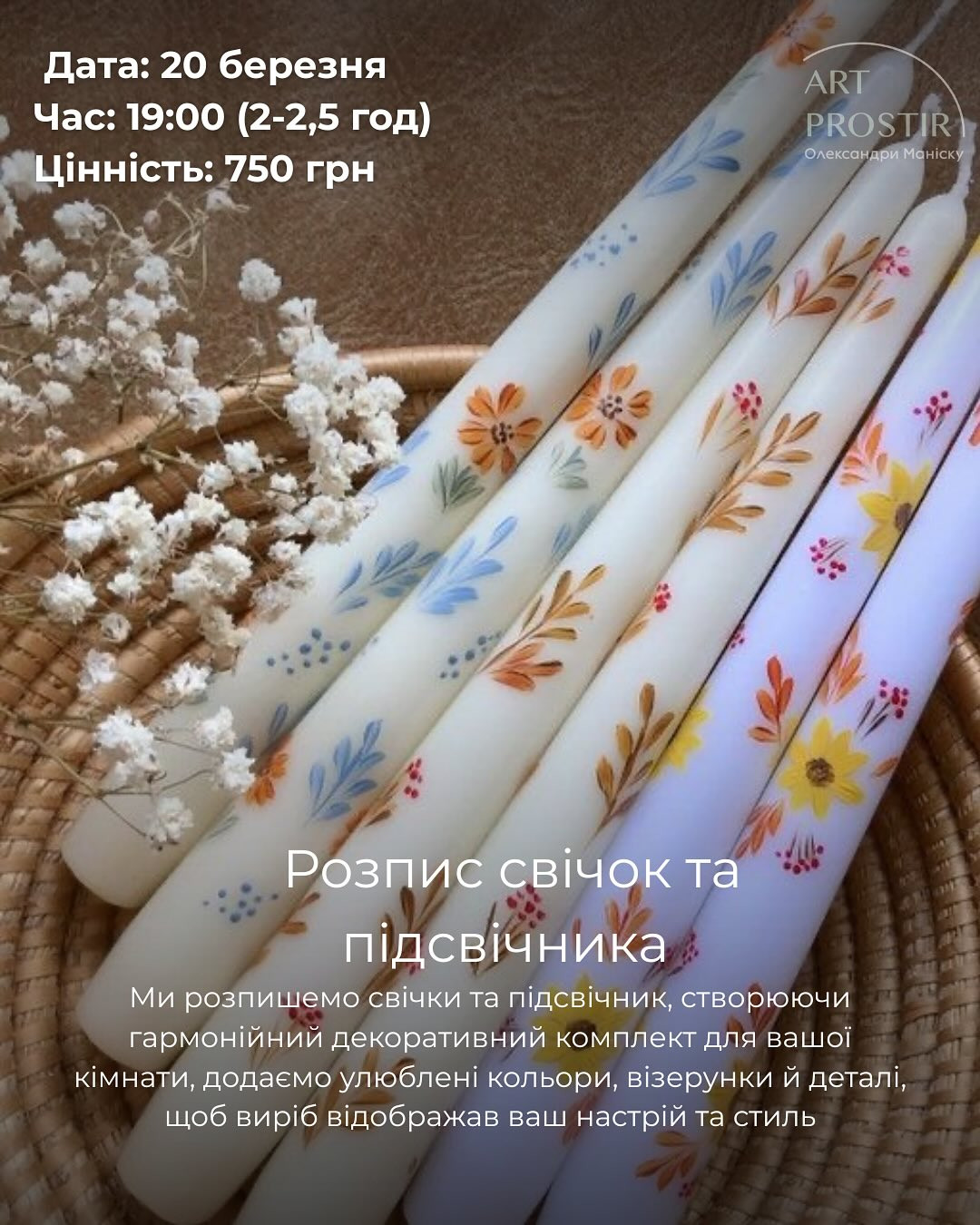 Майстер-клас "Розпис свічок та підсвічника" у місті Чернівці