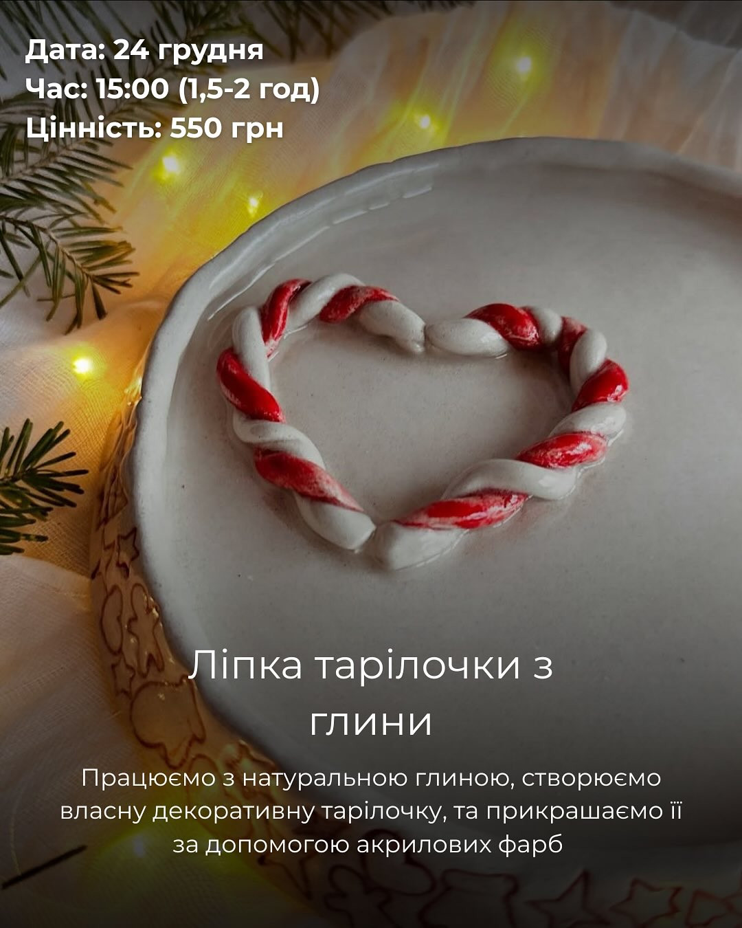 Майстер-клас для дітей "Ліпка тарілочки з глини" у місті Чернівці