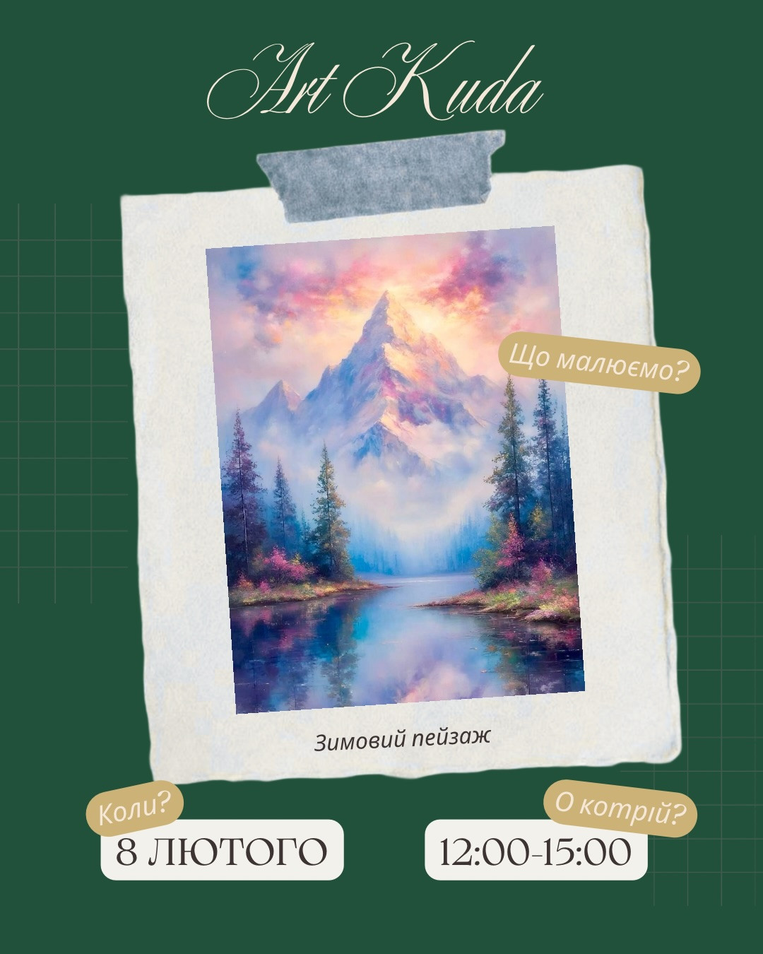 Ви не просто поринете у світ олійних фарб та створите за 3 години готову картину зимового пейзажу, але й відпочинете душею у естетичній затишній атмосфері.