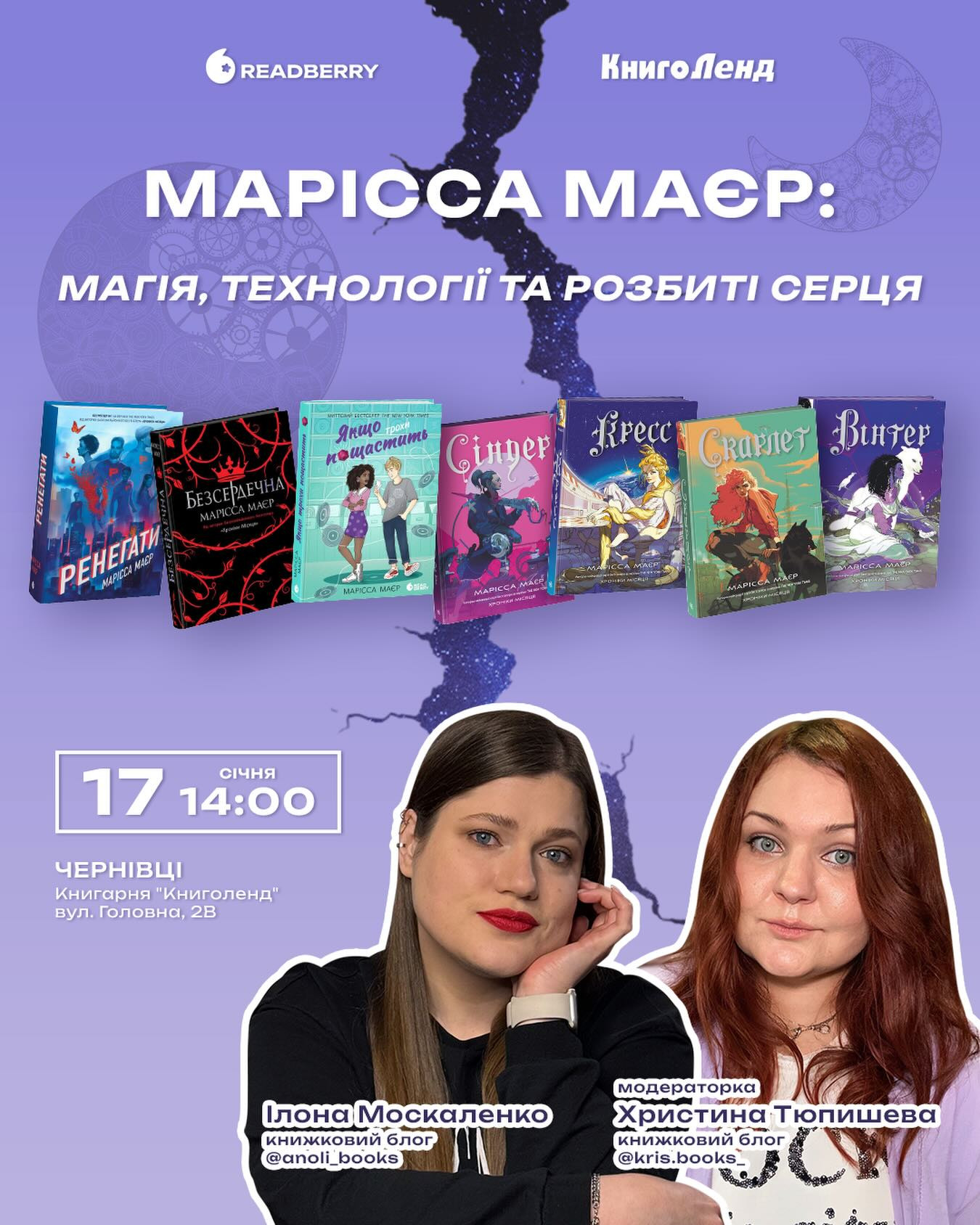 Запрошуємо на зустріч, присвячену творчості Марісси Маєр — авторки, яка поєднує магію й технології та пише про серця, що "ламаються", але не здаються.