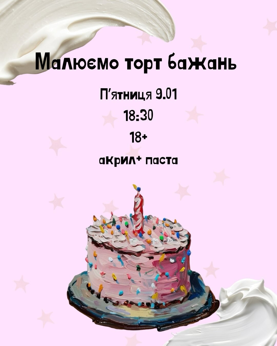 Ми будемо малювати торт мрії — той самий торт із дитинства, який хотілося отримати, але не завжди виходило.