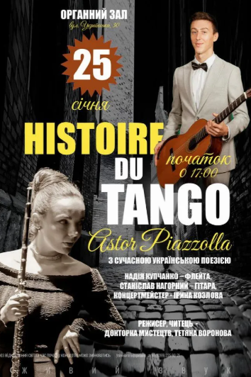 "Histoire du Tango" (Історія Танго) Астора П'яццолли- це більше ніж цикл для дуету гітари та флейти, що оповідає про історичний розвиток неймовірного, відвертого танцю. Адже танго виникло та досягло свого апогею в середовищі емігрантів, коли світ хитало від двох страшних воєн XX ст...