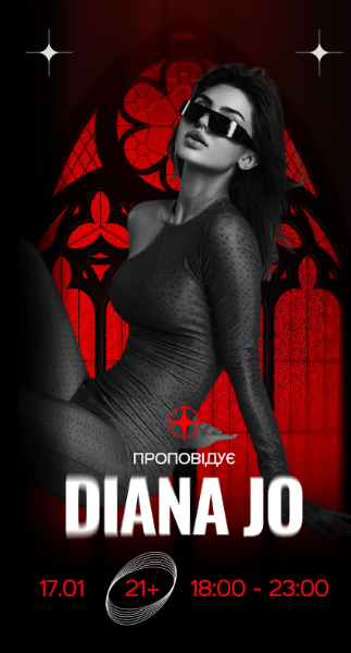 Проповідує нічні ритми: DIANA JO. В її сетах електроніка стає мовою почуттів, змушуючи тебе рухатись без компромісів.