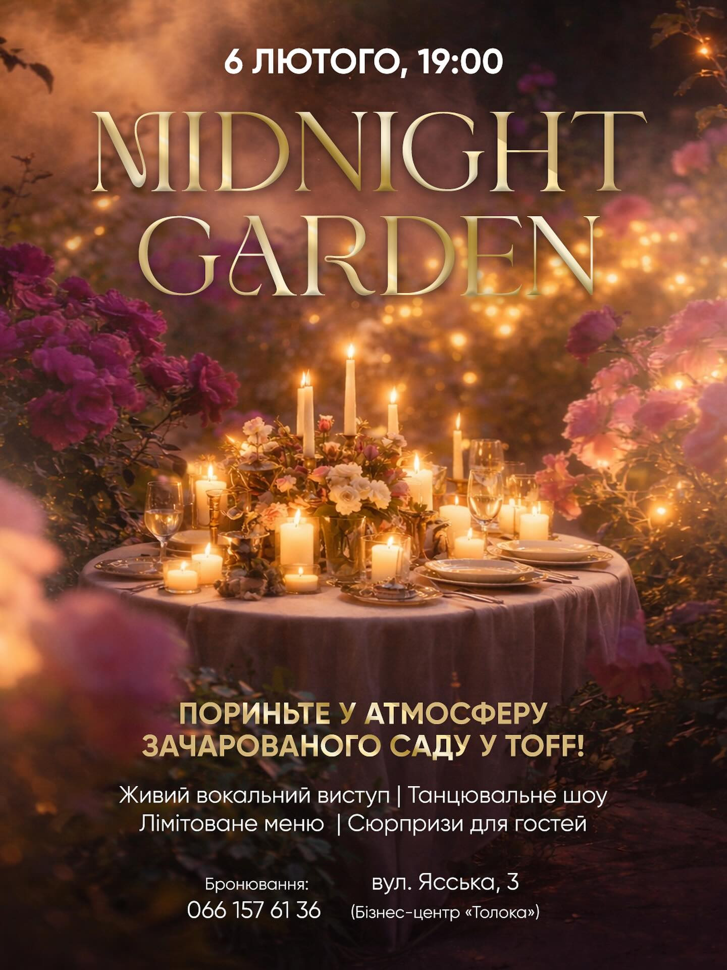 Midnight Garden - вечір, де квіти оживають у напівтемряві, а музика огортає простір,і кожен момент хочеться прожити повільніше..