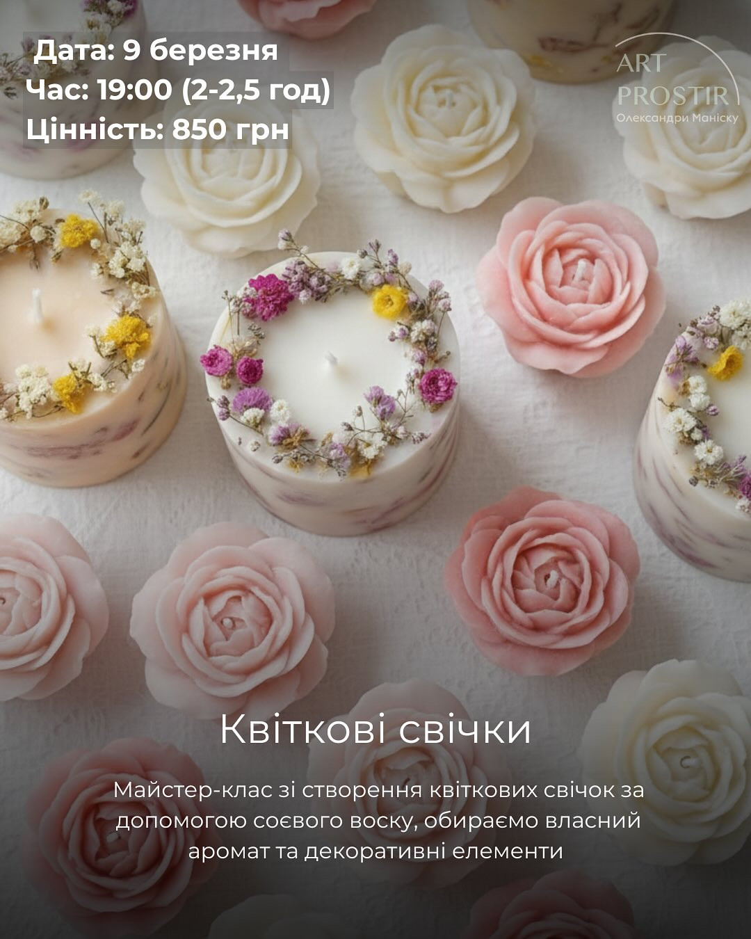 Майстер-клас зі створення квіткових свічок за допомогою соєвого воску, обираємо аромат та декоративні елементи.