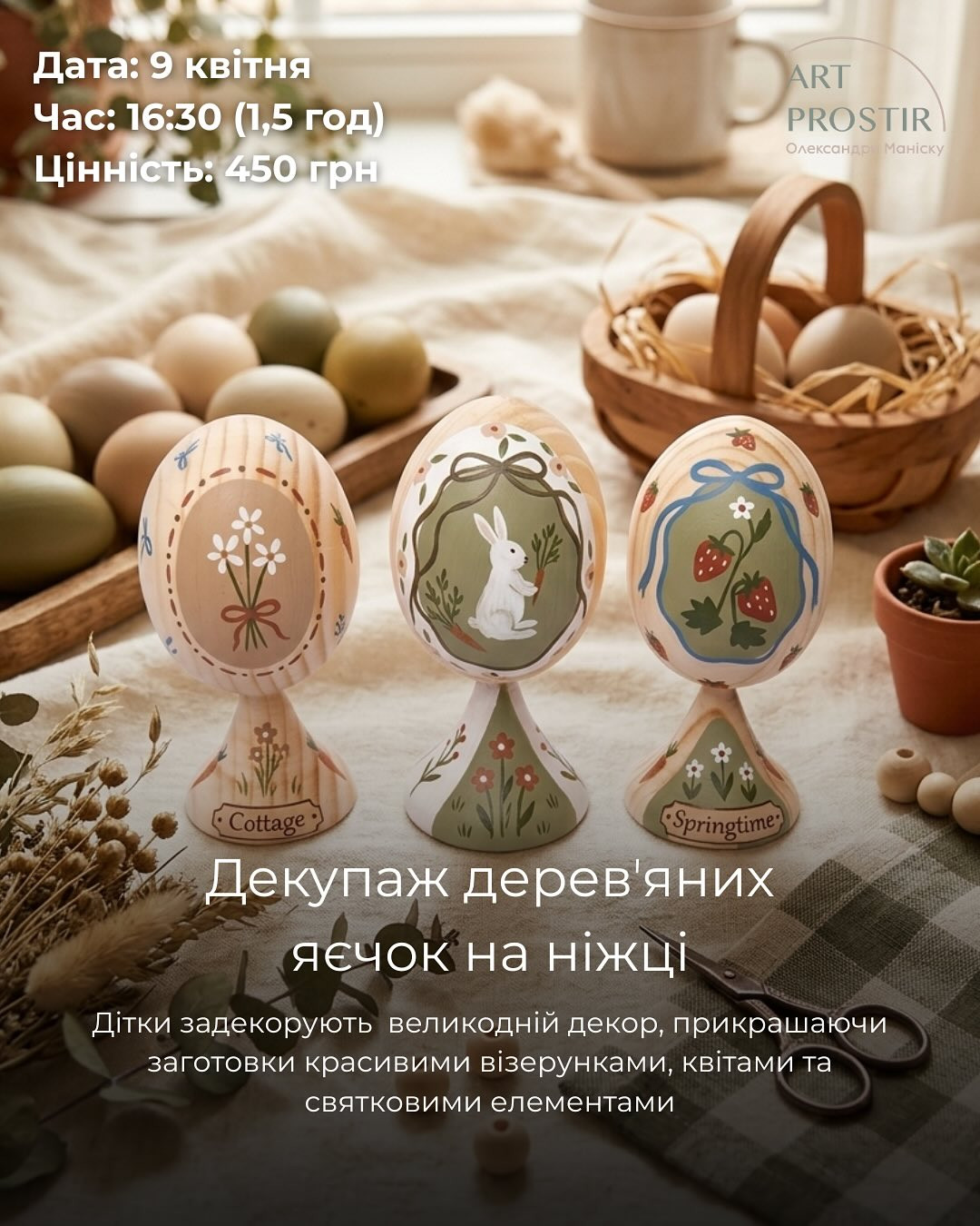 Майстер-клас для дітей "Декупаж дерев'яних яєчок на ніжці" у місті Чернівці