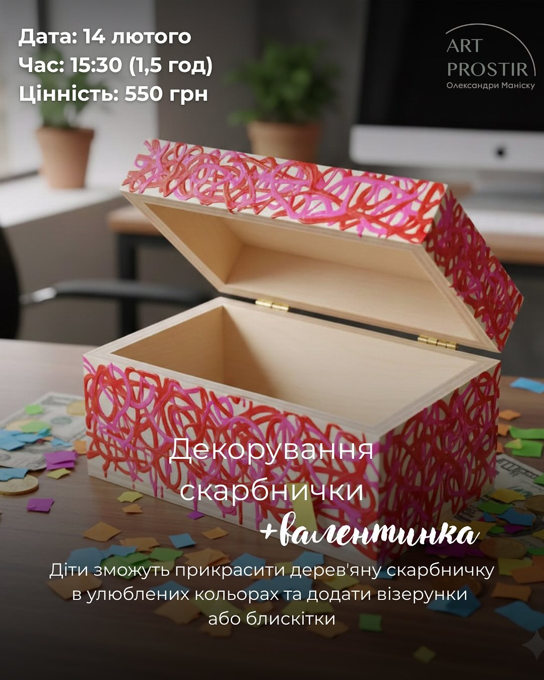 Майстер-клас для дітей "Декорування скарбнички + валентинка" у місті Чернівці