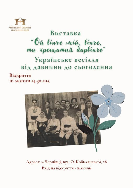 На виставці "Українське весілля від давнини до сьогодення" ви зможете побачити елементи обрядовості, різноманітність весільних атрибутів з музейної та приватних колекцій, фотографії молодят з Буковини й інших етнографічних регіонів України та простежити як змінювалась весільна мода.