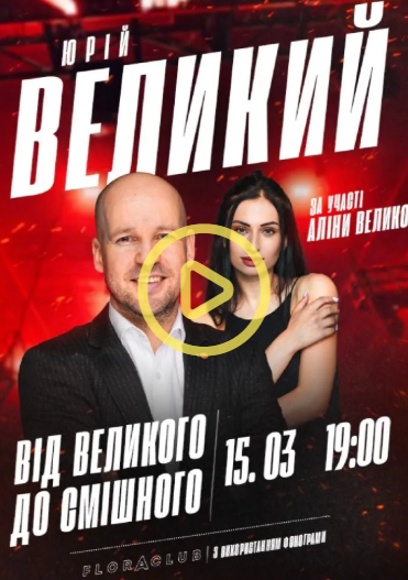 Юрій Великий — один із найвпізнаваніших українських коміків, пародистів — представить нову програму з актуальними жартами, харизматичними образами та фірмовими пародіями.