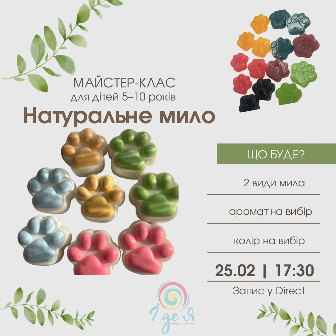 Будемо створювати мило у формі лапок, обирати аромат і колір, експериментувати та радіти своєму результату.