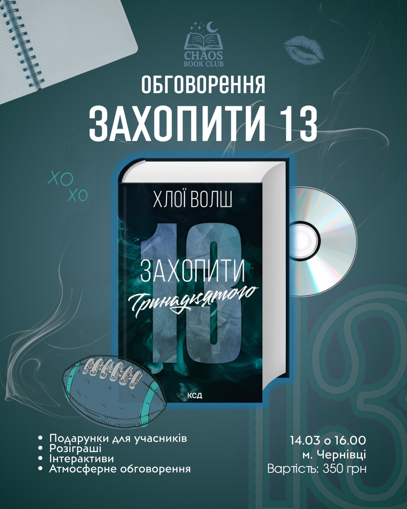 Обговорення книги "Захопити тринадцятого" Хлої Волш у місті Чернівці