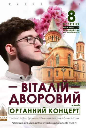 У виконанні Віталія ДВОРОВОГО - соліста Львівського будинку органної та камерної музики, володар спеціального призу фестивалю "Бескиди без кордонів"(Польща), переможця "Enschede international Piano competition" (Нідерланди), Головної нагороди "Золотий Парнас" XVIII Міжнародного музичного форуму "Bieszczady without Borders" (Польща) - звучатиме світова органна класика для чернівчан та гостей міста.